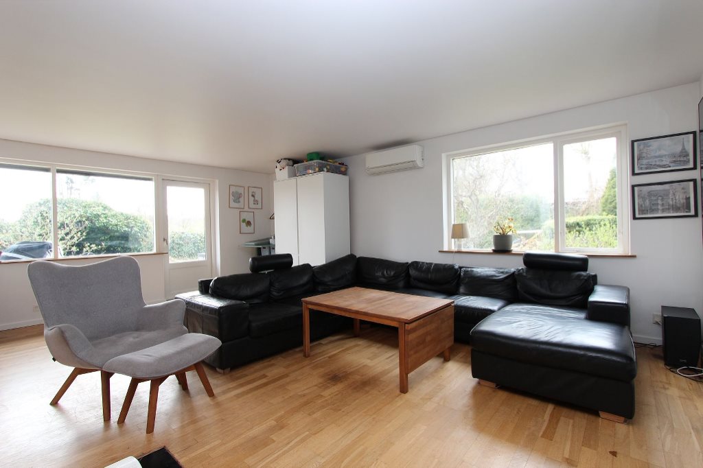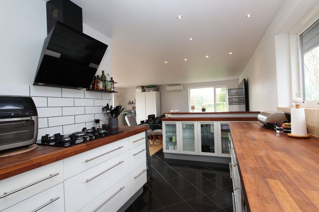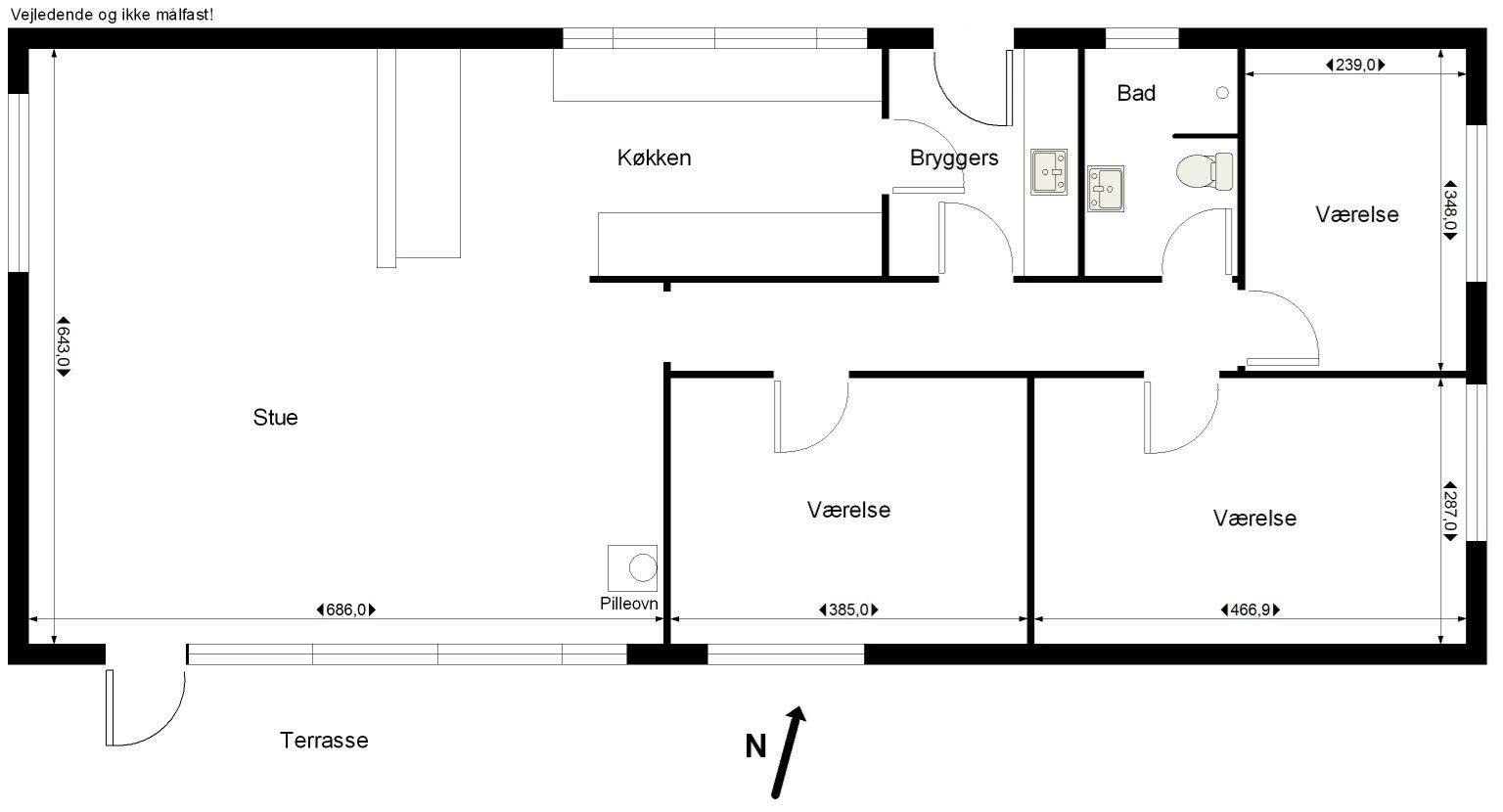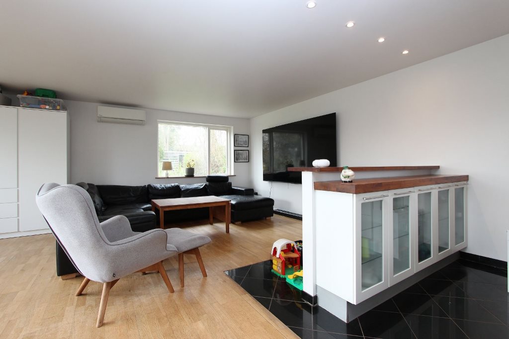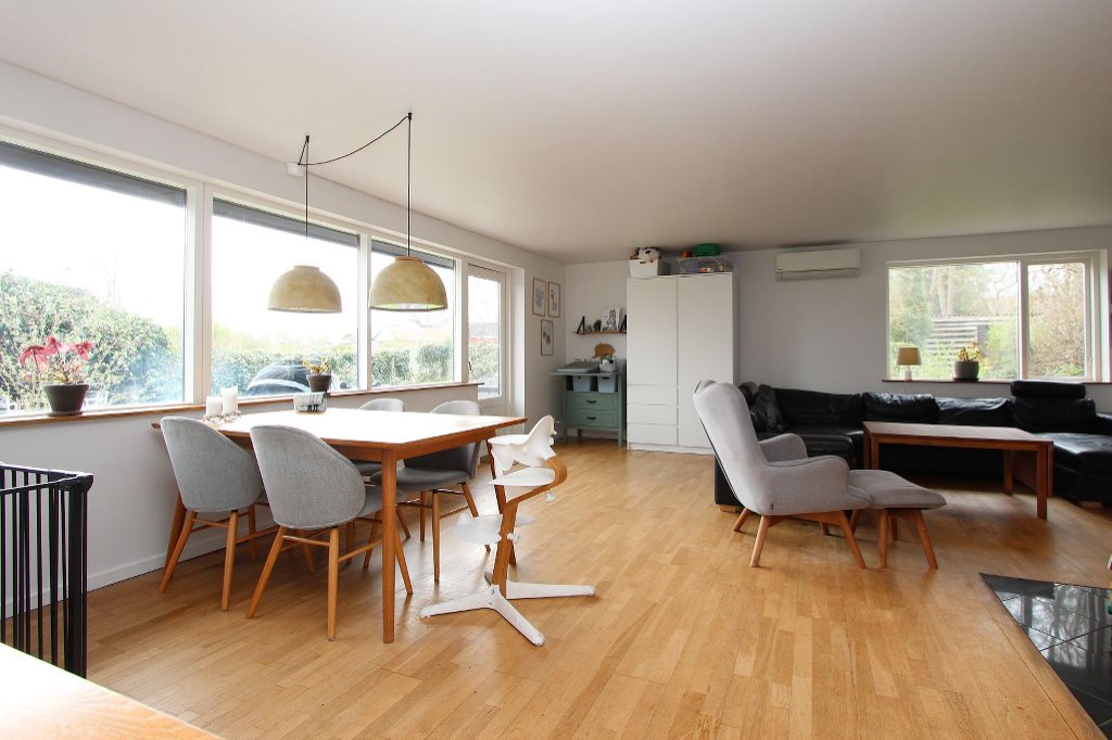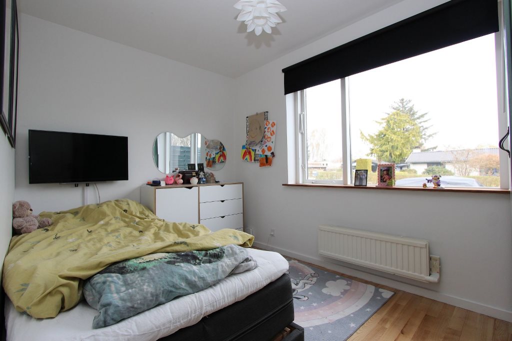 Stor, lys opholdsstue med pilleovn, varmepumpe samt udgang til den sydvendte terrasse. Flot, åbent køkken med flisegulv, spotlys, hvide elementer og træbordplader samt god skabsplads. Stort, lyst forældresoveværelse. To gode børne-/gæsteværelser. Flot badeværelse med flisegulv, spotlys samt afskærmet og flisebeklædt bruseniche. Fin entre/bryggers med flisegulv og vaskesøjle.