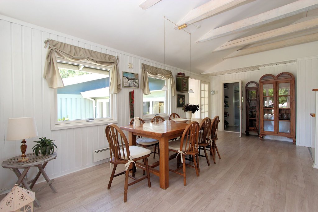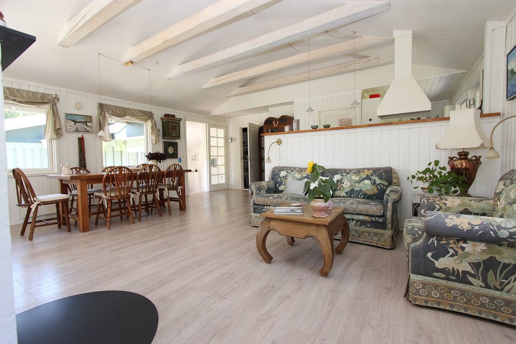 For enden af lille, blind vej ligger denne indbydende og indflytningsklare fritidsbolig. Huset er oprindeligt fra 1968, men om- og tilbygget i 2005, så huset i dag fremstår flot og tidssvarende. Ejendommen er kendetegnet ved et skønt lysindfald gennem store vinduespartier, der også giver et smukt kig til den omgivende natur. Stor, dejlig stue med åbent køkken og adgang til skøn udestue, er ejendommens naturlige hjerte, der bl.a. suppleres af pænt badeværelse og tre rummelige soveværelser.
