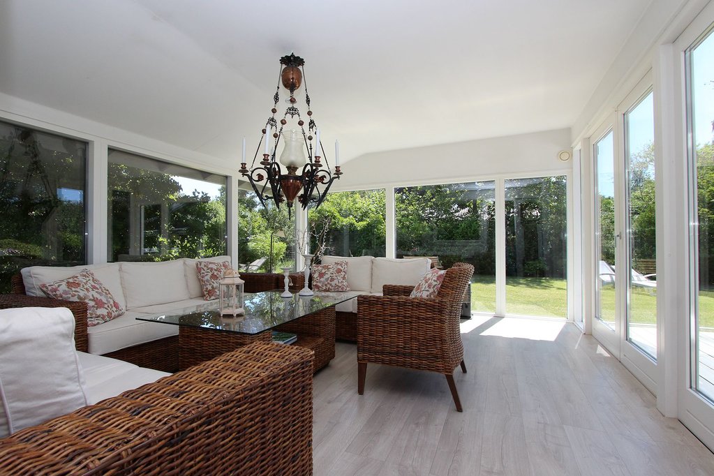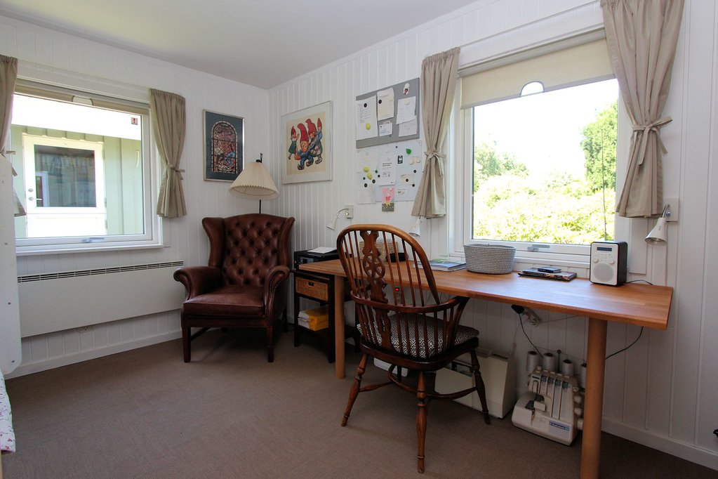Stor, højloftet opholdsstue med pejseindsats, spiseplads, smuk udsigt over friarealerne samt udgang til det sydvestvendte terrasseanlæg. Lyst, åbent køkken med udgang til østvendt terrasse. Lys, sydvendt udestue med store vinduespartier til den skønne natur samt flere udgange til det sydvestvendte terrasseanlæg. Badeværelse med gulvvarme i flisegulv samt stor, flisebeklædt bruseniche. Stort forældresoveværelse. To gode børne-/gæsteværelser. Entre/mellemgang med flisegulv, varmepumpe og udgang til sydvendt terrasse. Bryggers med udgang til afskærmet terrasse mod nord/øst.