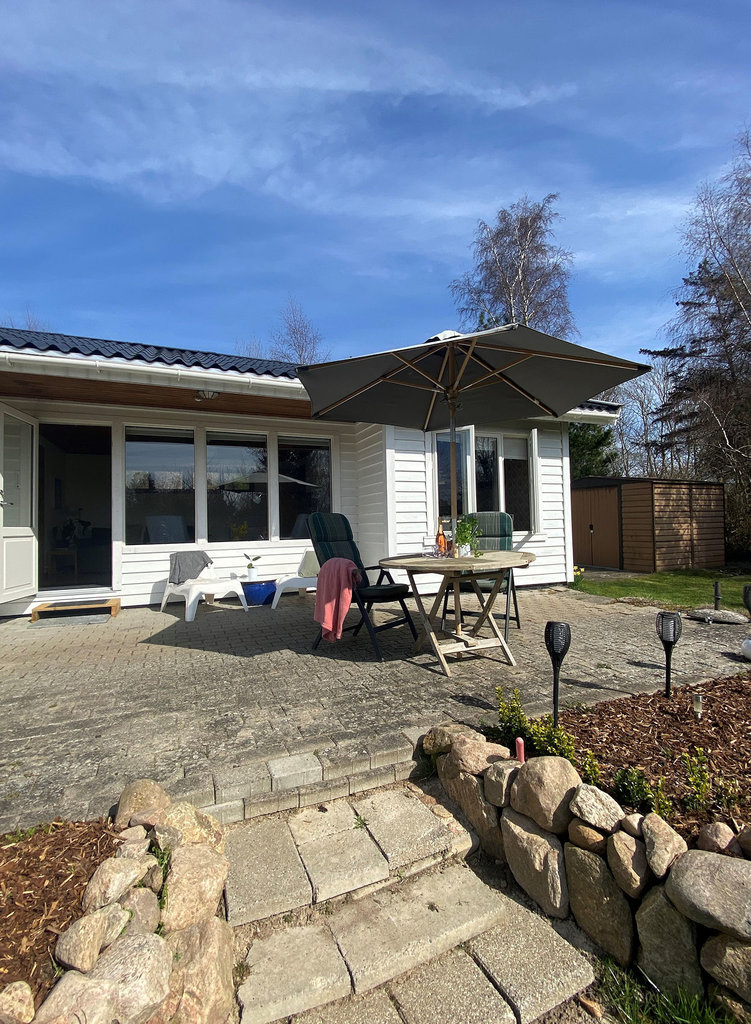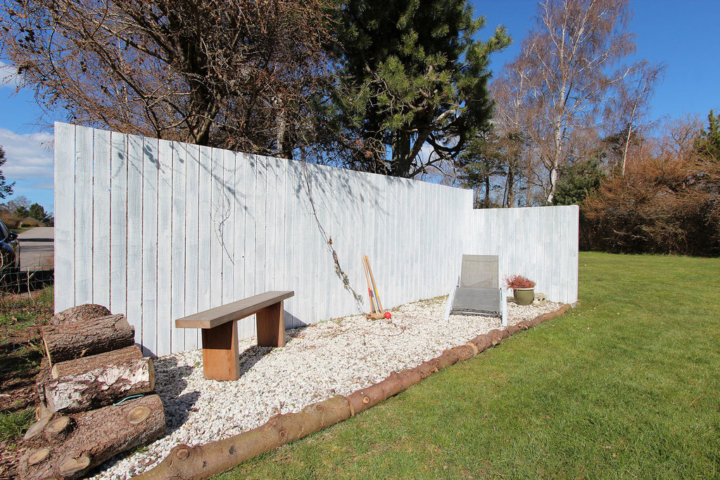 Mod syd kan haven nydes fra afskærmet fliseterrasse, som suppleres af afskærmet hyggemiljø i haven. Her er der desuden ældre udhusbygning samt endnu et fritliggende udhus. I Havens vestlige hjørne er der desuden nyt, isoleret anneks samt hyggeligt drivhus.