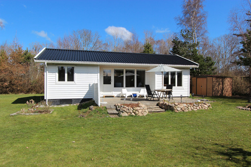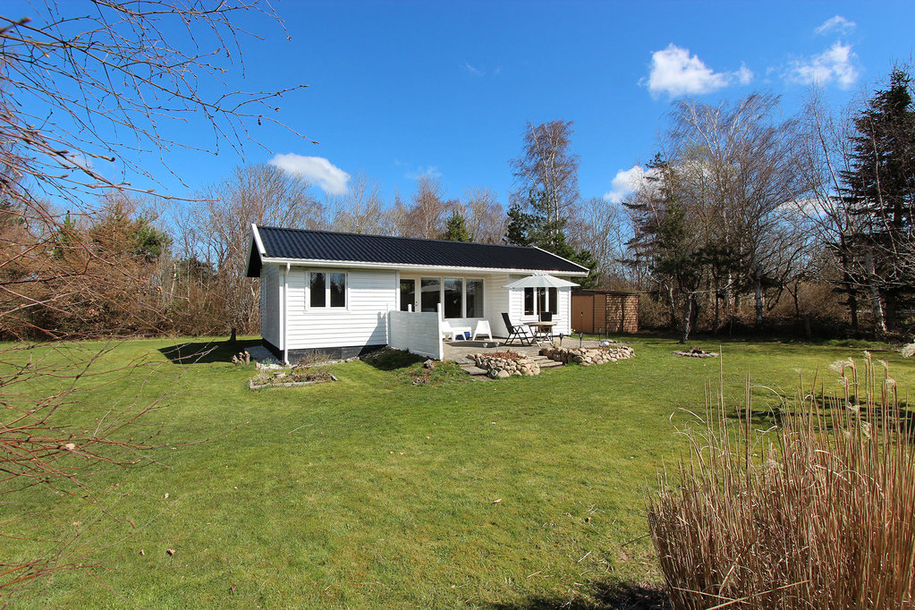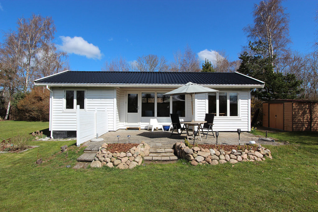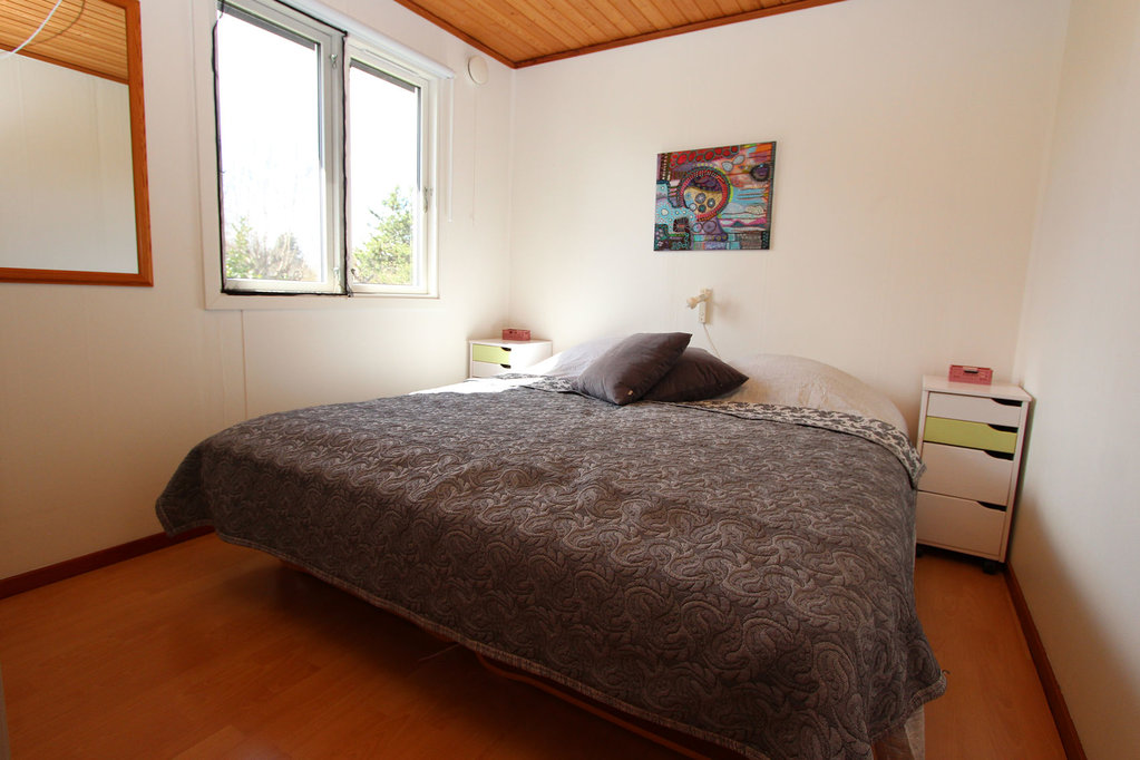 57 m2 pæn fritidsbolig med hvidmalede træfacader. Ejendommen er oprindeligt fra 1973, men i de senere år opgraderet med bl.a. ny tagbelægning, ny varmepumpe samt nye vinduer og døre i næsten hele huset. Interiøret er lyst og venligt og den veldisponerede indretning har givet plads til lys opholdsstue, åbent køkken med god spiseplads, to gode soveværelser samt entre og flisebadeværelse.