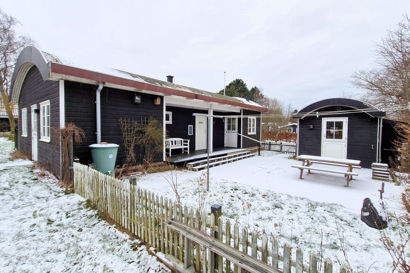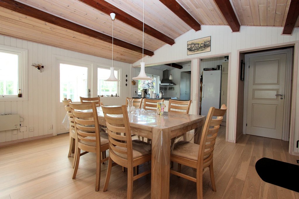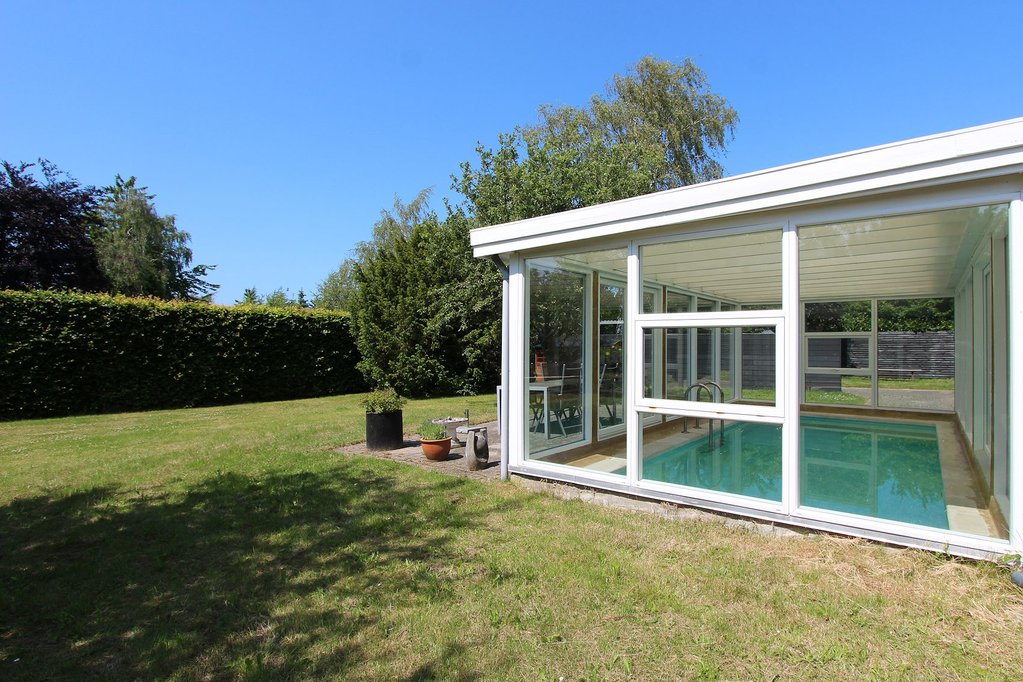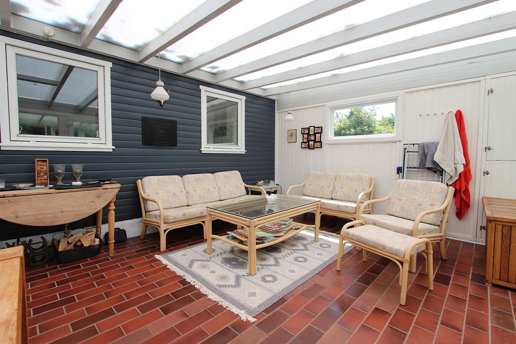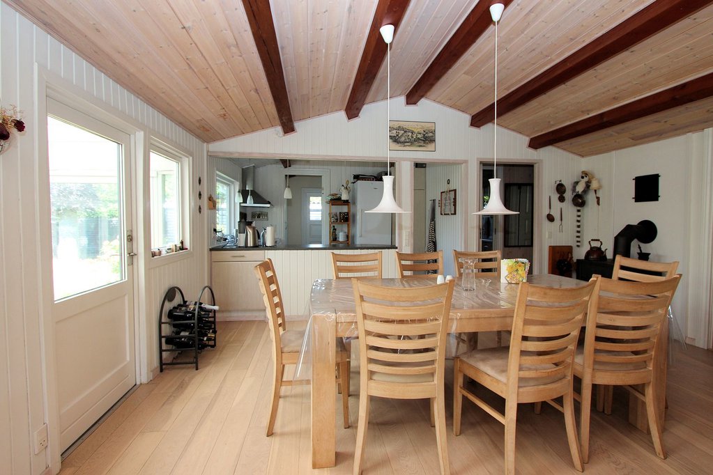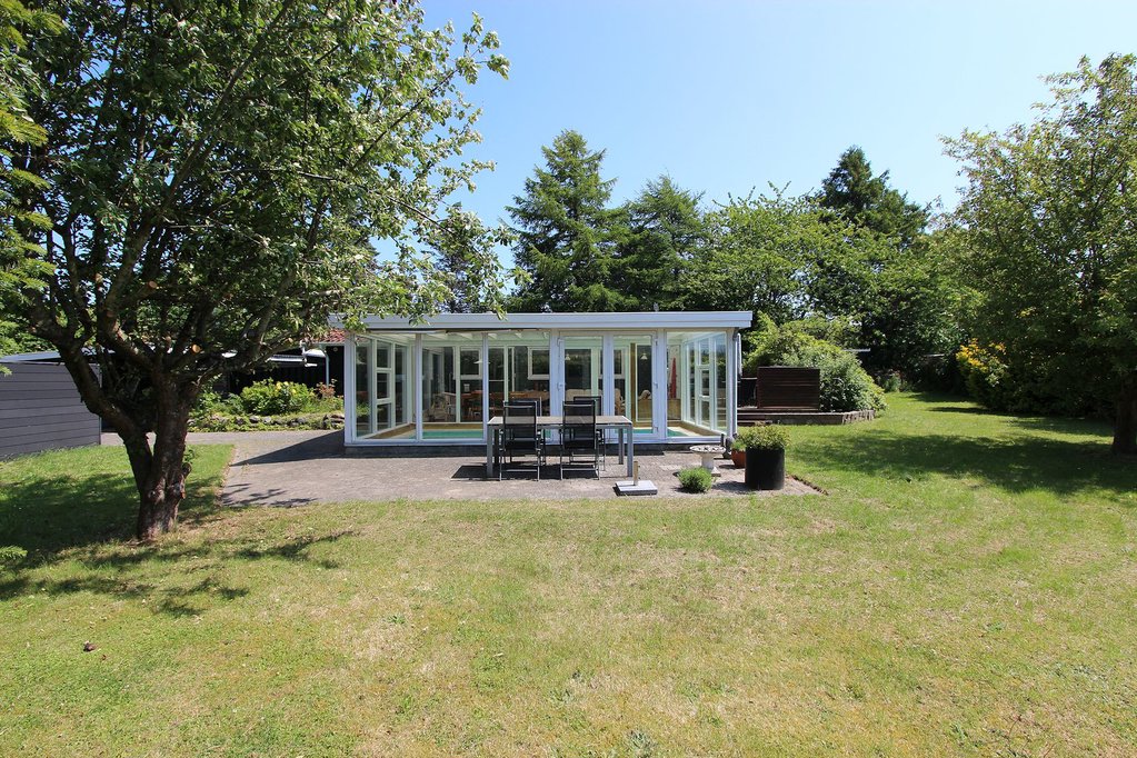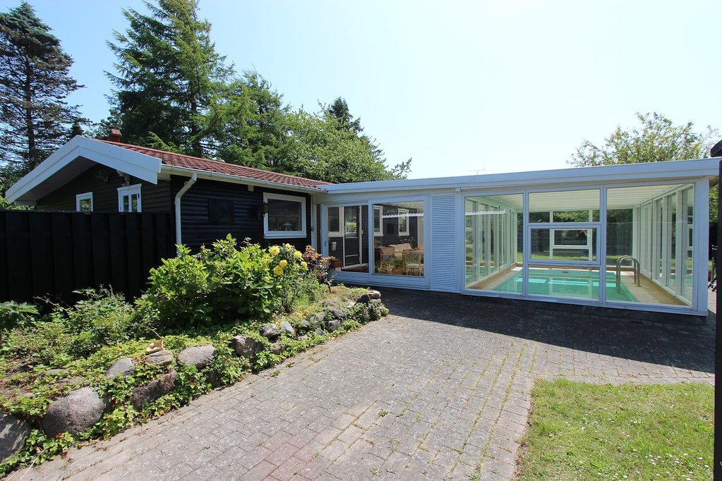130 m2 skønt fristed bestående af 77 m2 hyggeligt fritidshus samt 53 m2 lys udestue med pool. Huset fremstår i den klassiske sommerhusstil med sortmalet træbeklædning og hvide vinduespartier. Husets interiør er overalt lyst og indbydende, med loft til kip, hvidmalede vægge samt lyse gulve og lofter.