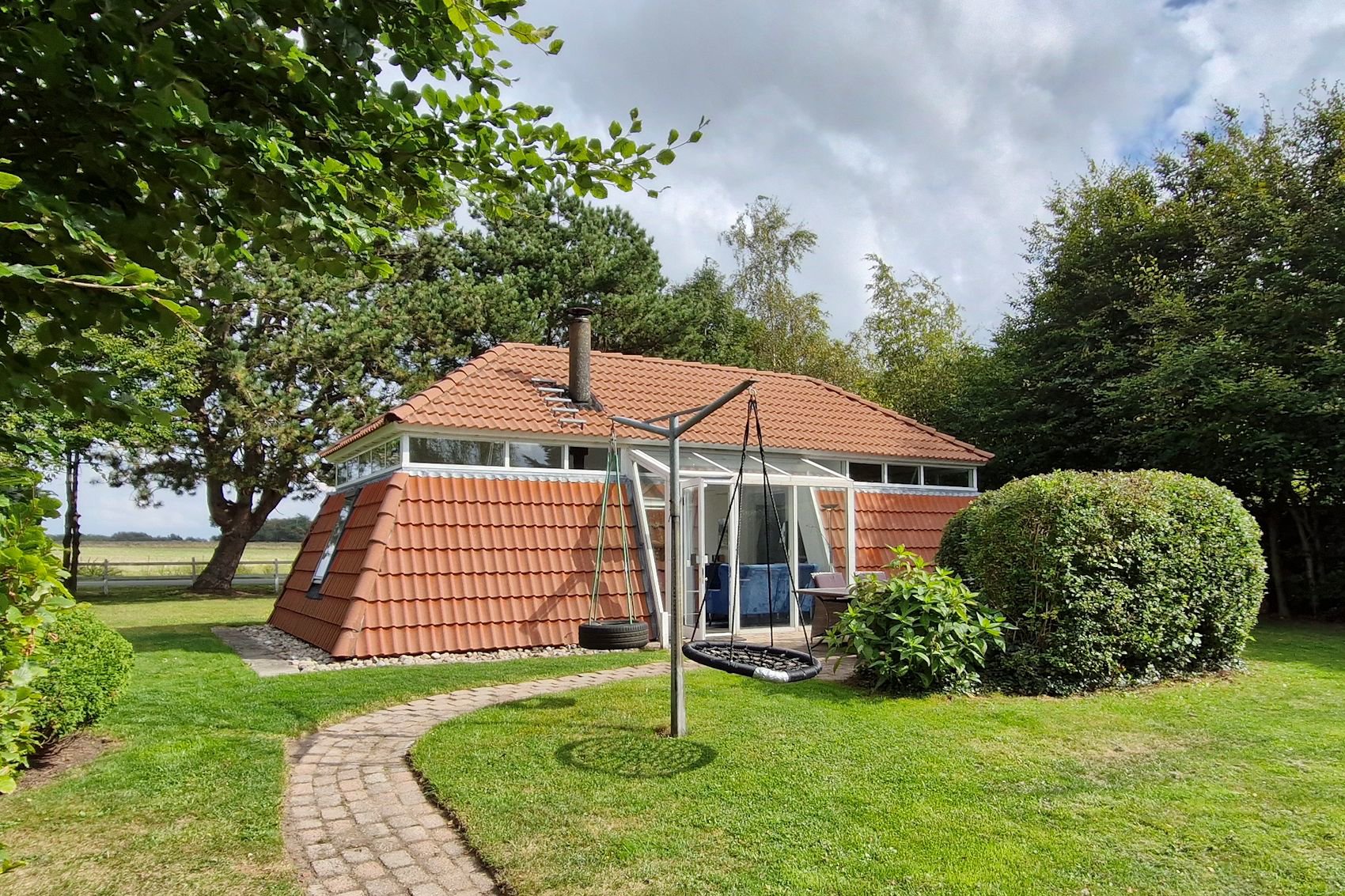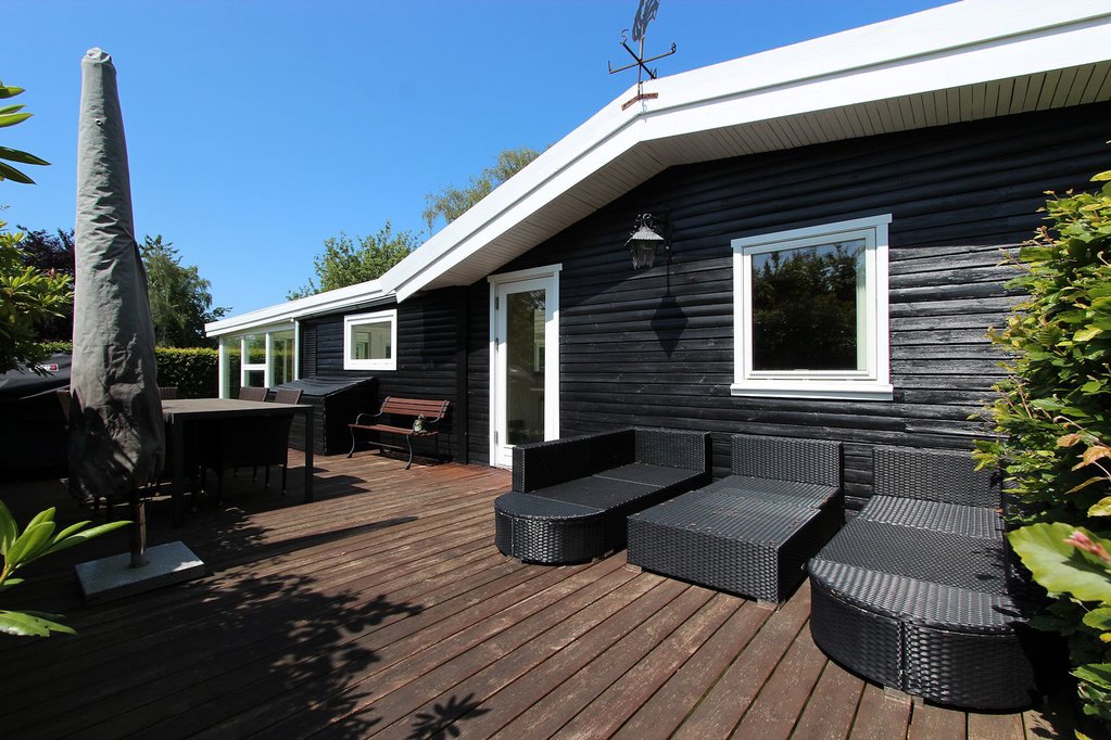 For enden af lille, blind vej og med smuk udsigt over de åbne marker ligger denne utraditionelle fritidsbolig. Huset har et indbydende interiør og skønt lysindfald. Den nemme og solrige have kan nydes fra afskærmede fliseterrasser mod øst og vest.