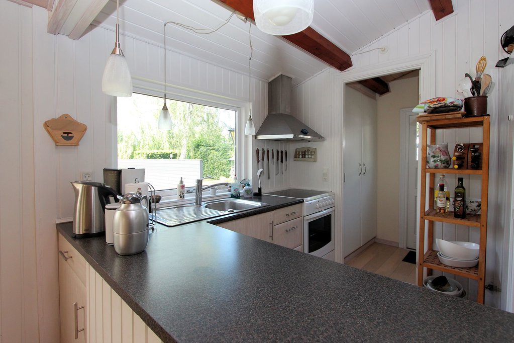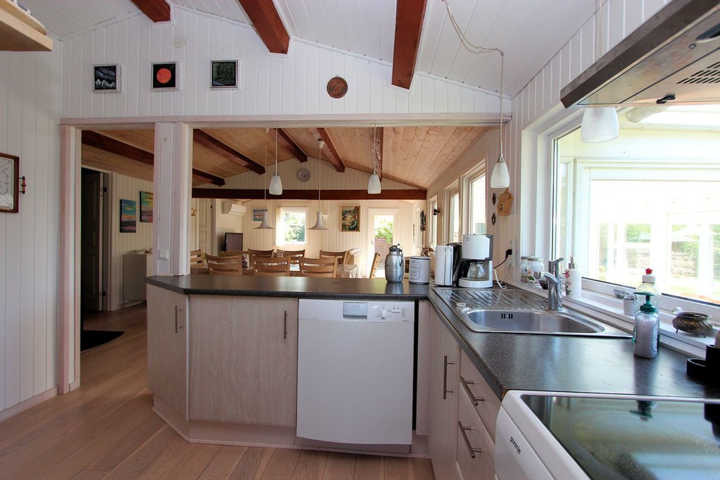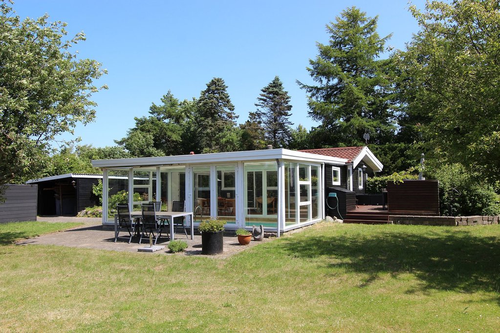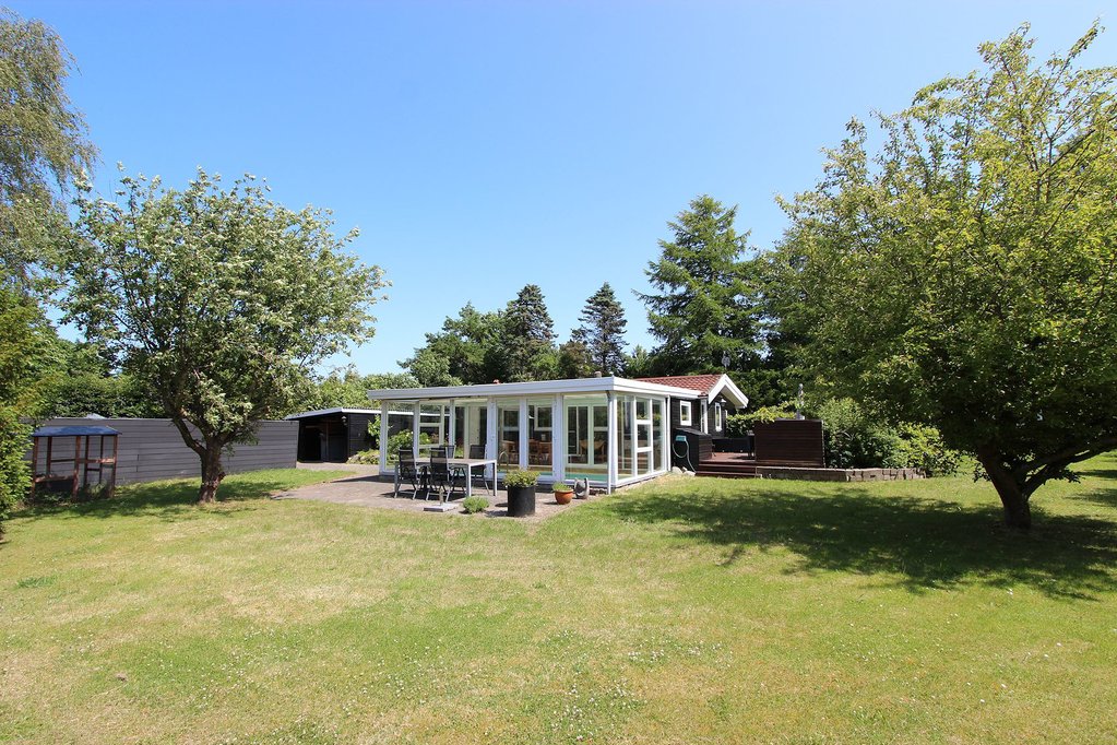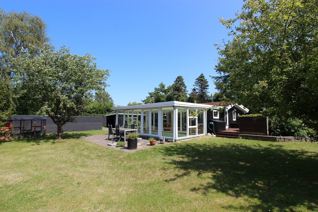På en helt unik natur/skovgrund, med masser af smukke beplantninger, ligger denne indbydende fritidsbolig. Omgivelserne er meget fredelige, lille, blind grusvej kun godt 800 m fra stranden. Interiøret er lyst og indbydende med flot køkken og pænt bad.