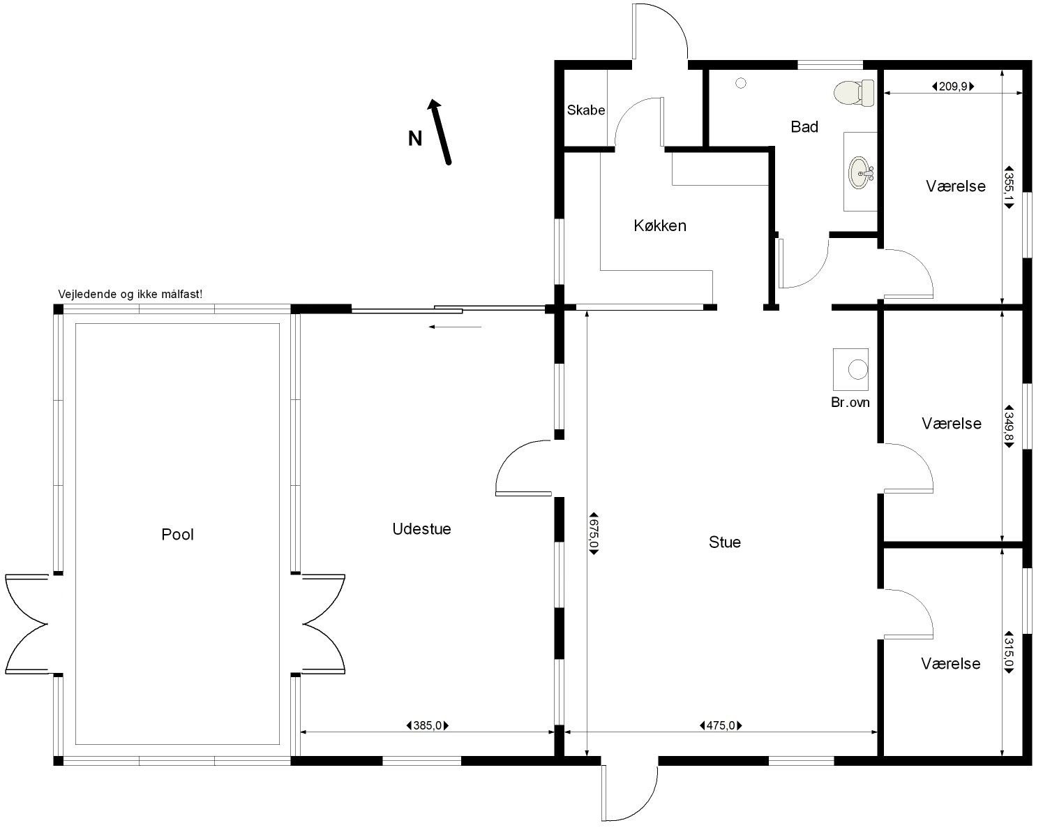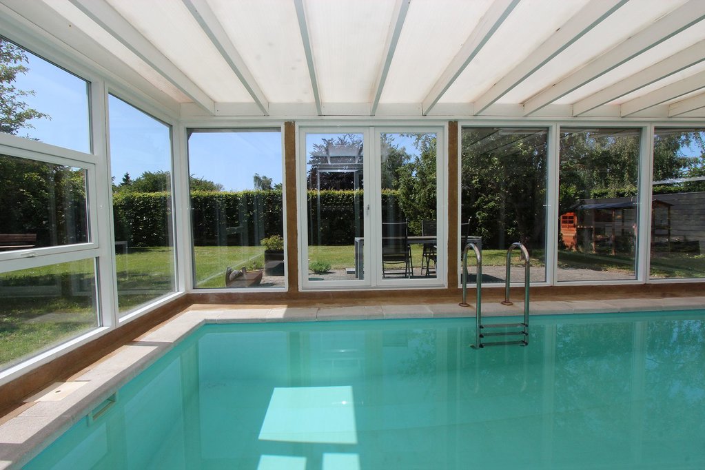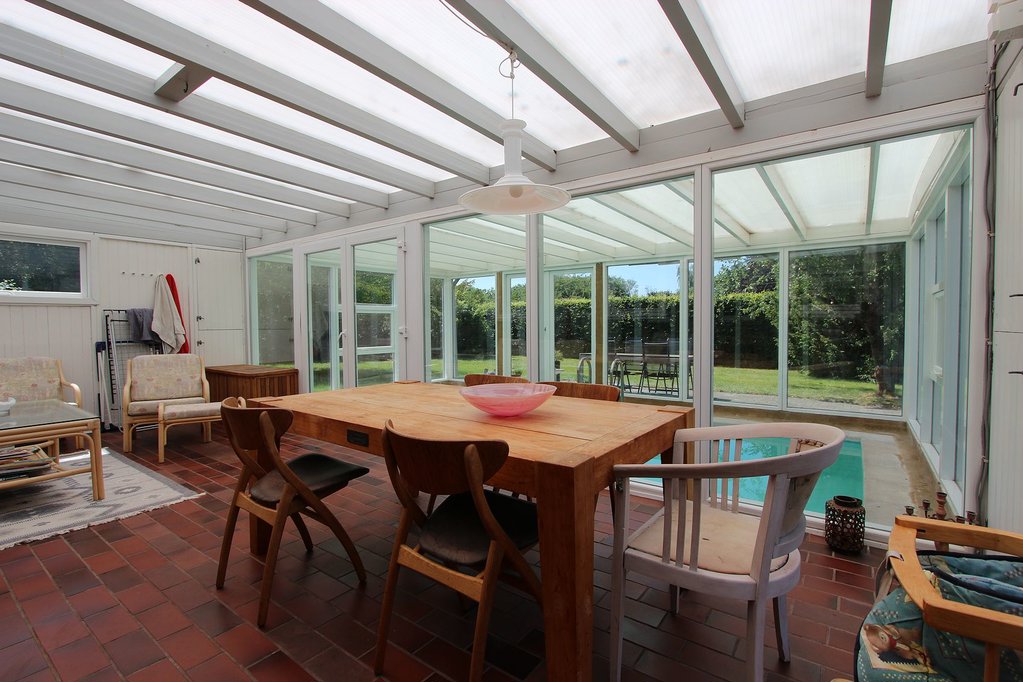 Stor, lys opholdsstue med varmepumpe, brændeovn samt udgang til den sydvendte terrasse. Lyst køkken i åben forbindelse med stuen. Stor, vestvendt udestue med pool og skydedørsparti til vestvendt terrasse. Tre gode soveværelser. Pænt flisebadeværelse med stor bruseniche. Entre med skabe.