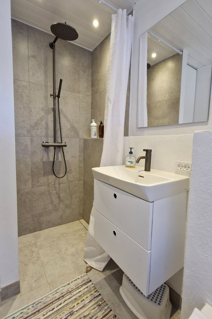 Hyggelig opholdsstue med varmepumpe, pejs, spiseplads samt udgang til den overdækkede terrasse. Delvist åbent køkken med udgang til østvendt morgenterrasse. Fire lyse soveværelser, det ene med udgang til sydvendt terrasse. Flot badeværelse med flisebeklædt bruseniche, vaskemaskine samt gulvvarme i flisegulv. Entre med garderobeplads.