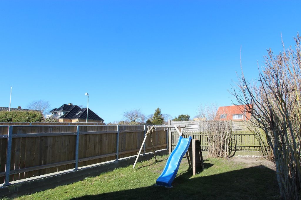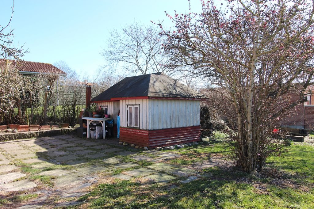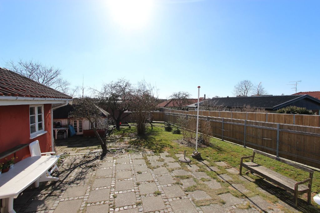 Grunden er afskærmet fra naboer og vej og opdelt i lille græsbeplantet område mod nord samt større, sydvendt have med stor fliseterrasse, spredte beplantninger samt hyggeligt legehus. Fra fliseterrassen er der adgang til kælderen samt til fritliggende udhusbygning, hvor der er indrettet anneks med eget badeværelse. Ud mod Vesterbrogade er der desuden parkeringsareal med plads til flere biler.